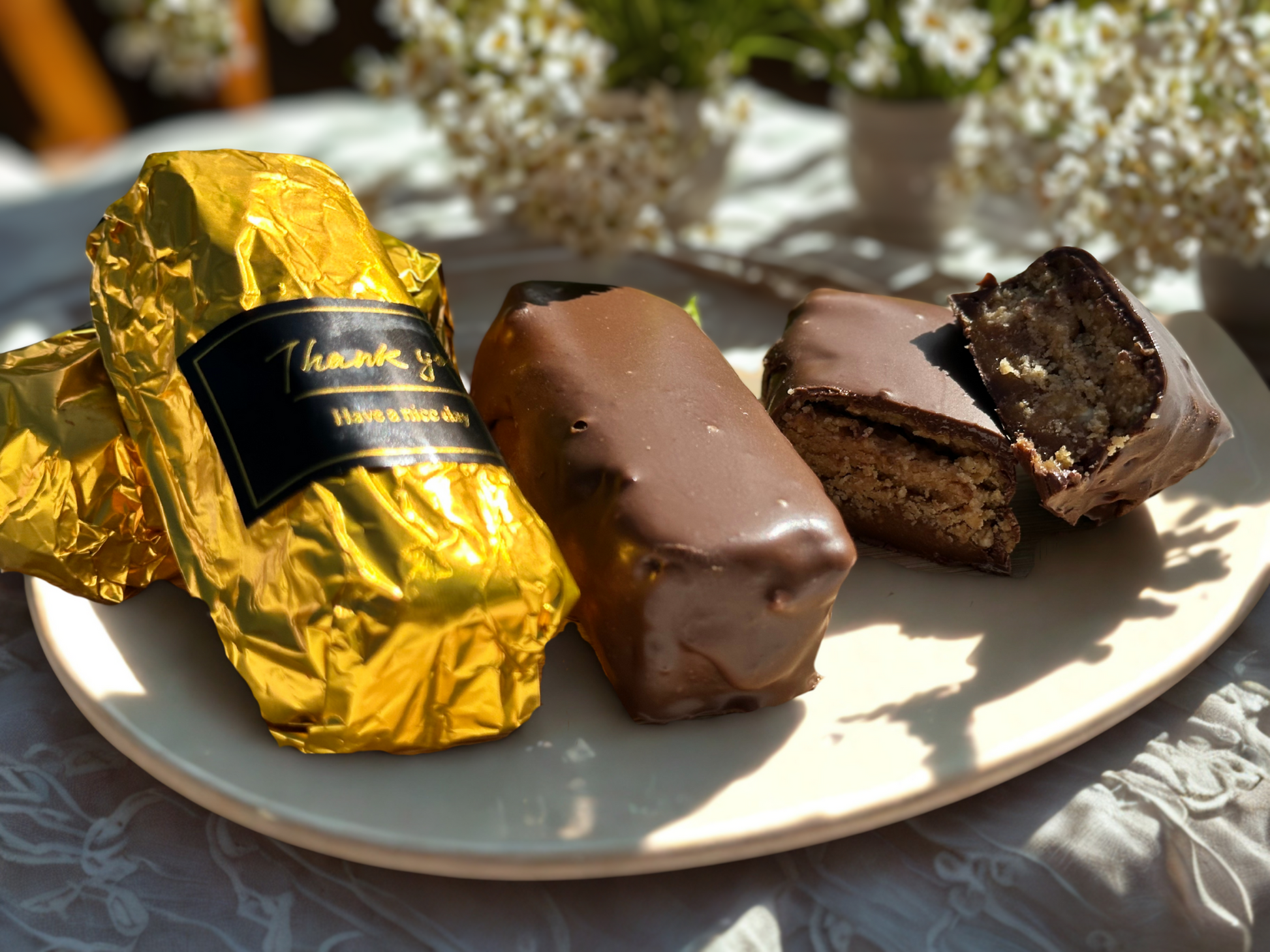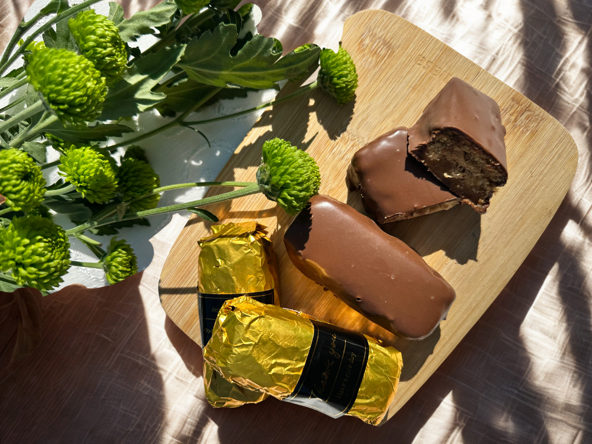 Totul este acoperit cu un strat fin de ciocolată cu stevia, pentru un gust intens, fără zahăr si fără aditivi dăunători